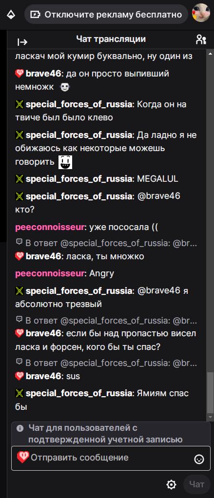 Лучше с пустым чатом сидеть чем с такими гнилыми хуесосами которые в чате жопу лижут а по чатам гниль льют, как Лемоныч, или Данечек который путает твич с двачем и хуярит озлобленные сообщения максимальные, пусть попустятся немного >>25139471