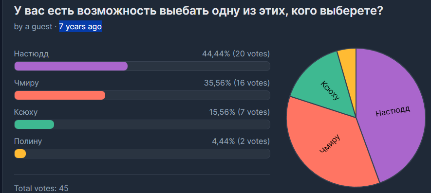 Зашёл к сане чмудушу на полминуты, он раз 10 извинился непонятно перед кем, непонятно за что. Буквально любимое слово "извини". Так настоящие извинения и обесцениваются. И ещё из всей кучи прочёл зачем-то сообщение про то, мол, правда ли, что бизнесмены делятся своими жёнами с другими. На что он смутился, промямлил что нет, это не правда, такоготнк бывает, с чего это вообще взяли. Вот что это за реакция на такой вопрос была? Он мог не читать этот вопрос вообще, но на подсознании его тянет к этой теме чтобы ещё раз извиниться