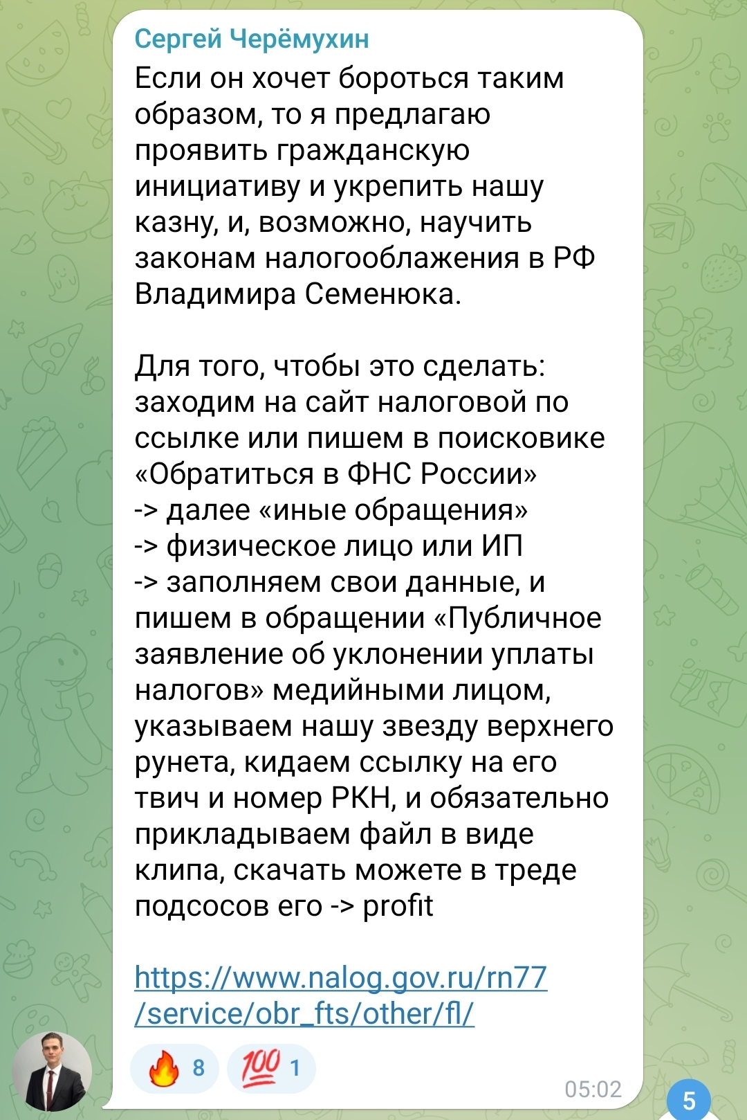 Притягивать за налоги это прозападная иногентская американская либеральная англосаксонская темка. Мы русские между собой всё решаем по-честному. сейм:?