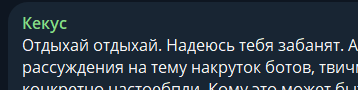 Седня уже вчера на работе маркетолог сказал, что работал раньше в агентстве, которое работало со стримерами. Они организовывали какой-то ивент с бустером, ещё придумали чтобы лева2к поднялся на гору и поставил там флаг купера. Так вот, я про накрутку спросил, он сказал что это классика, всем похуй на чат, кабанам главное показатели и цифры, у огромных компаний типа того же купера (сбербанк), просто бесконечные деньги, они их вкладывают во всё подряд, потому ничего не теряют, отследить сложно, главное по цифрам отчитаться и всё. Так лутают все, кроме кабана, но он в свою очередь как илюха и говорил наебал работяг и залутал миллиарды. Главное что онлайн не был меньше обещанного/заявленного/требуемого, иначе тогда пиздак