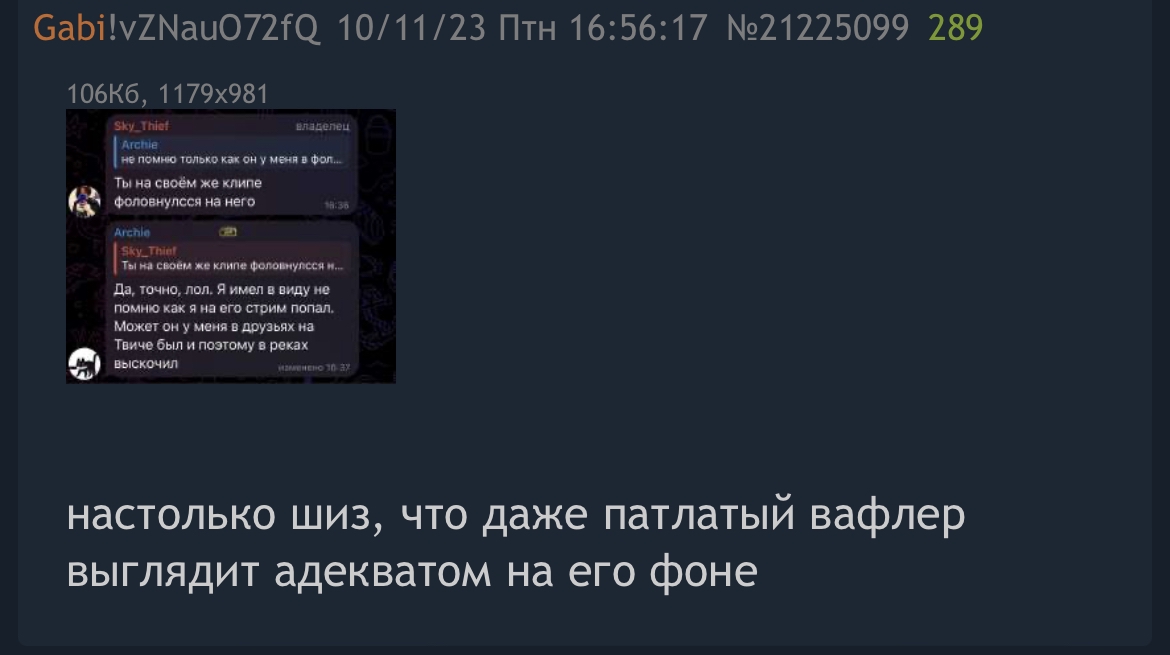 >>25098909 Че тебе не нравится, блять ебать? Это контент с алкашом. Ты на это >>25098843 должен залупаться, потому что это хуй пойми кто, а еще сказали что из тг обоссонаго скайчморя, не имеющего отношения к треду.