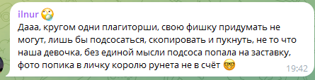 >Дааа, кругом одни плагиторши, свою фишку придумать не могут, лишь бы подсосаться, скопировать и пукнуть, не то что наша девочка, без единой мысли подсоса попала на заставку, фото попика в личку королю рунета не в счёт 🤓