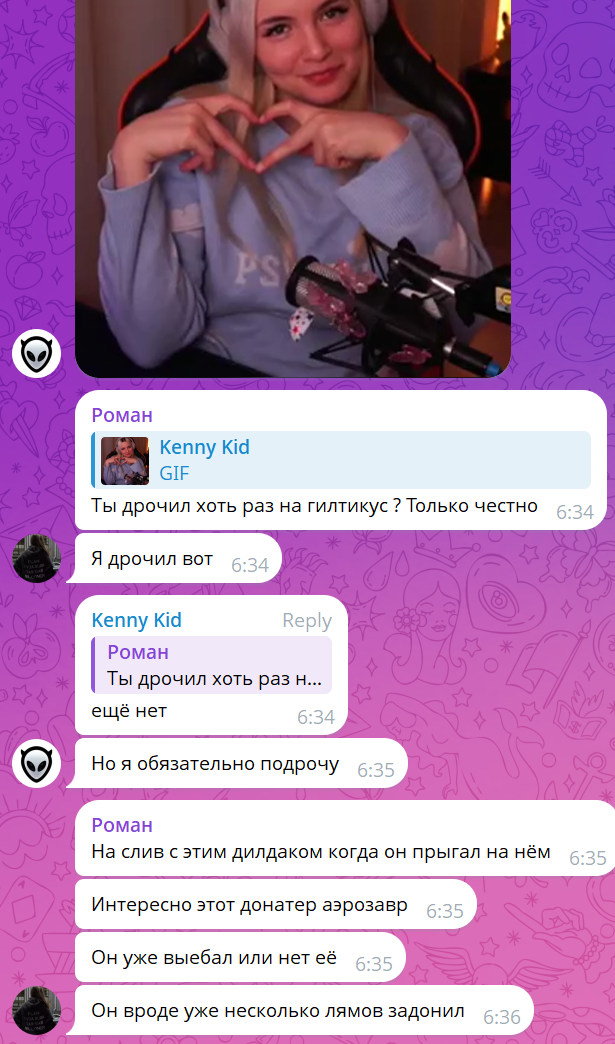 Подведем итоги дырянка симон и ее ко опозорилась соляшкинофф истерит орет 2 стрима подряд, угрожает расправой, визжит как свинка юзя в истерике банит всех старых зрителей, чистит свои коменты в тг, смазывает себе очко и посильнее его расширяет лишь бы дианочка не разорвала контракт сама дианка бегает по чатам и роняя кал оправдывается кирил какеш занимается тем же, только еще не попадает по клавишам. несет какую-то невнятную чушь на совместке саня вудуш тепло принял зрителей ильи и сильно обрадовался увидев реальных зрителей на стриме