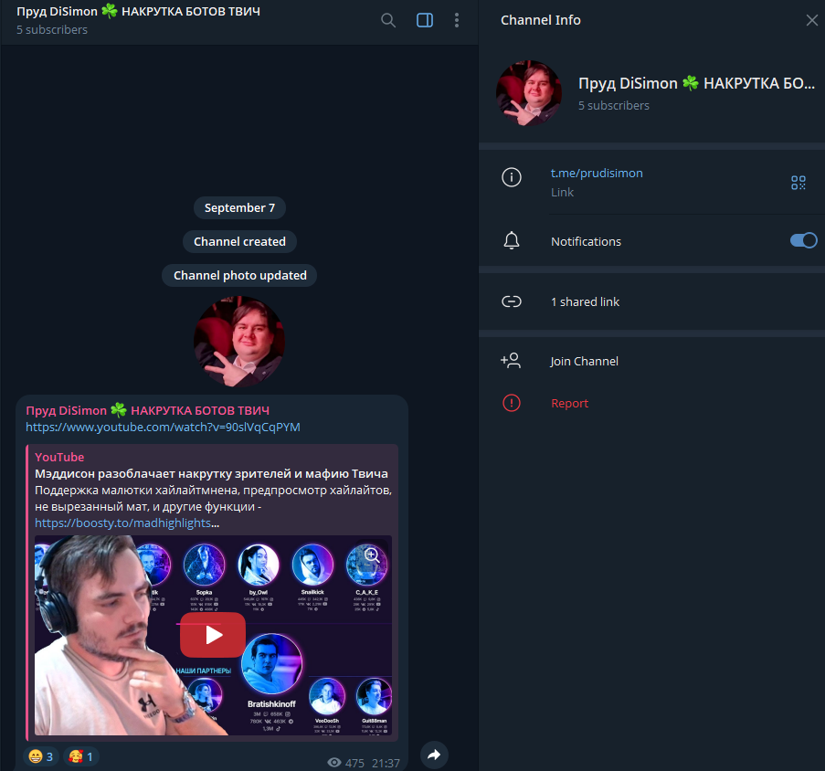 кста дианка изменила ссылку на тг канал вместо своего прудика вот на этот