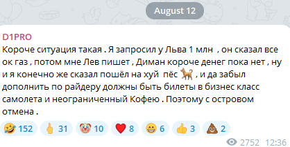 Хуя там таракан выдает базу, оказывается его все кинули на бали и он слил со своей карты 50к на трансов, сидит в в долгах на минус сотку, за хату нечем платить и т.д. Вот и тильтуш т.к в пензу не хочеет