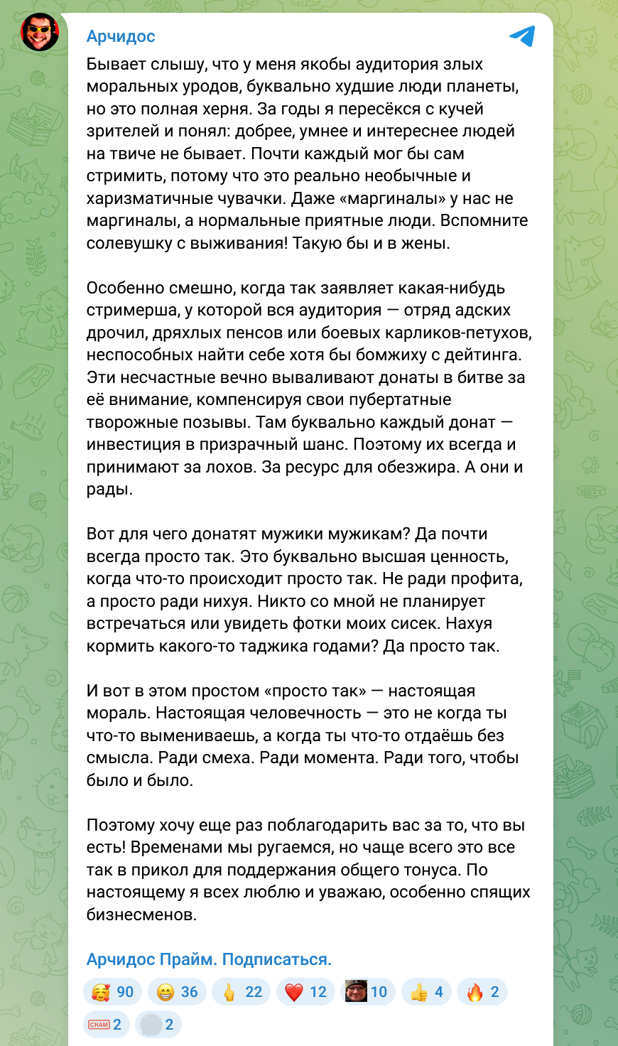 Да тут дело не в арчидосе или его зрилах даже, у пиявки на копросёловой новый объект обожания - геморойное очко жопича и его зрилы, старые друзья и подруги могут смело идти нахуй, дерьмо полторашье ещё ни раз польёт их дерьмом, чтобы выслужиться перед новым барином