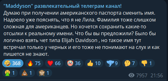 А все заметили, что как только я начал ставить на посты Дианочки в телеге пилюлю, то это подхватили другие, и теперь она ограничила реакции. Уровень чсв у карлицы представили?