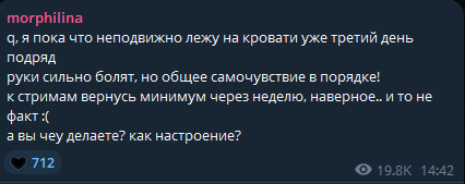 всем привт мне оч плоха стримить недельку ещё точно не буду конечно же из-за операции(жду пока носик вернётся домой)