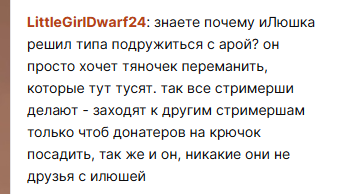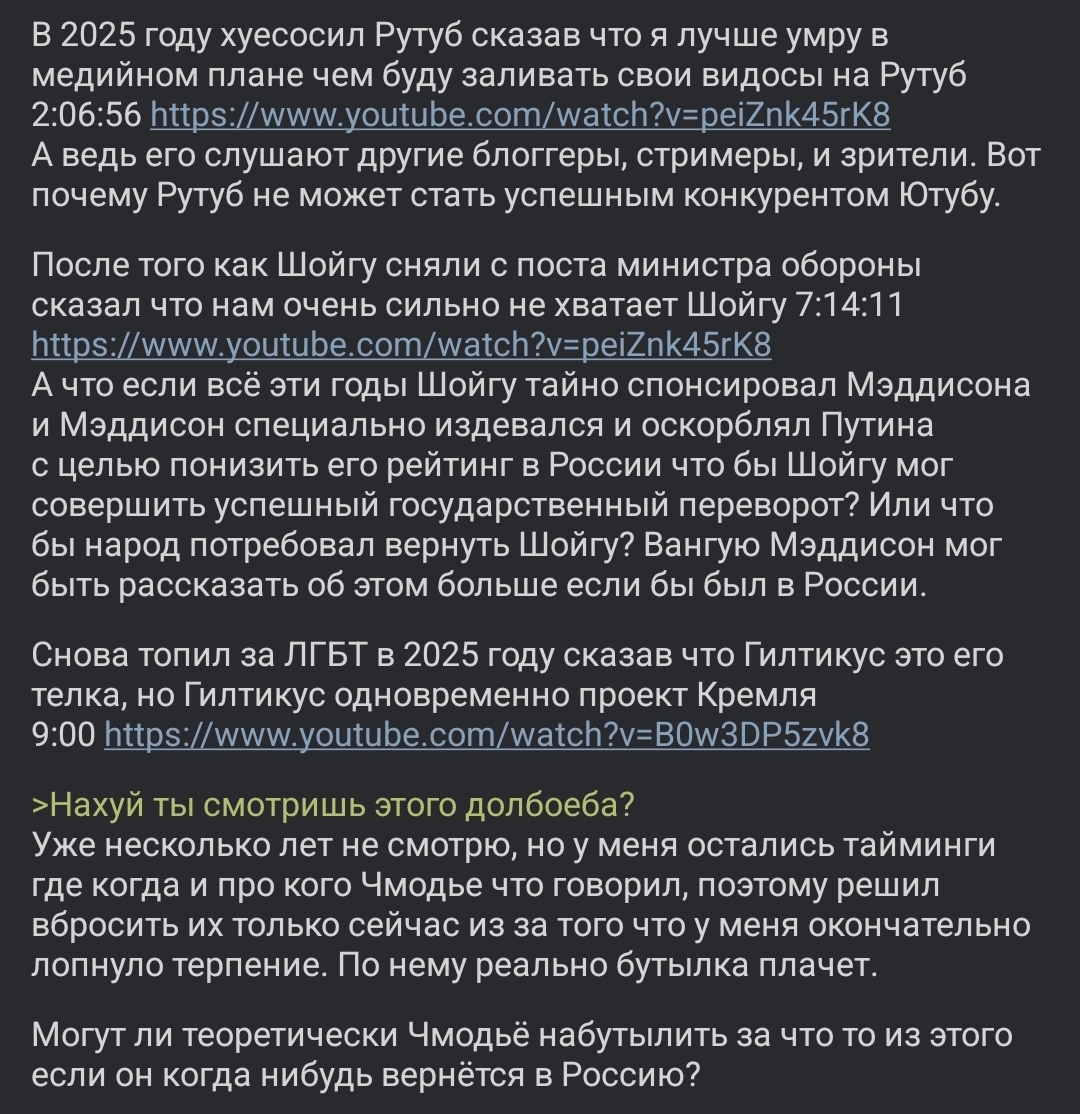 Я напоминаю что в голове калнормера абсолютно нормально хейтить Илюху и желать чтобы его захуярил негр или по меньшей мере депортировали и одновременно донатить ему под никнеймом посраков. Да, вот с таким шизиком мы находимся в этом треде. Думайте.
