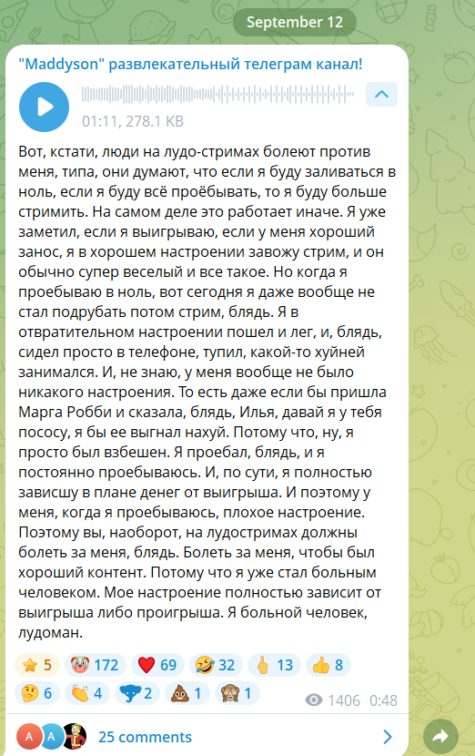 Есть вайбик, что большинство с кем раньше общался на твиче и с кем начинал лет 7 назад примерно, оказались крысами, дерьмом и отбросами общества, и среда обитания сделала меня таким же