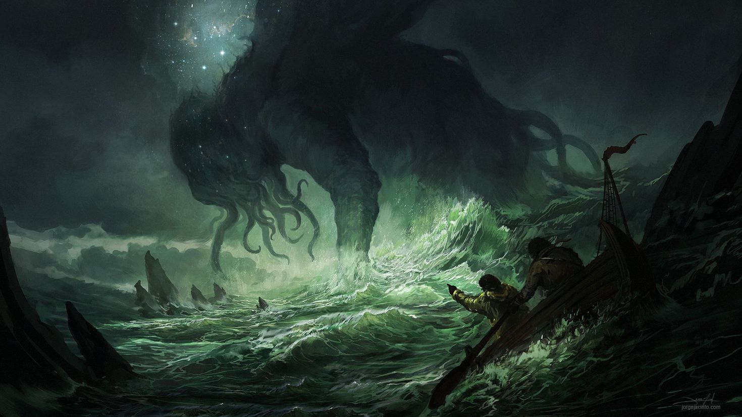 У Лавкрафта есть ахуенные рассказы, где реальный гигантизм, про Ктулху нихуя толком и не написано, в самом первом рассказе он типа размером с динозавра или около того, а например в "Погребённый с фараонами", вот там, реальный нахуй гигантизм, уровня подземного мира, с существом, чьи размеры действительно неописуемы