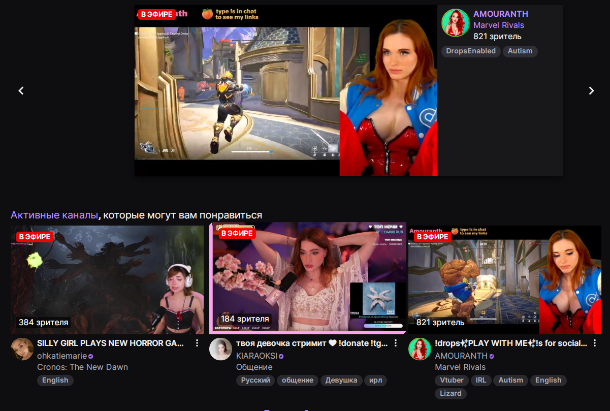 >>25193648 → Так нет я понимаю допустим смотреть стрим какой нибудь лалипнчекс, который жопой трясет на стриме и танцует или даже ненорму, которая там тоже может хуйню какую то творить на стриме, звать в гости всяких бомжей своих симпов и т.д. ну хотя бы что то происходит Но эта же вообще нихуя не делает на стримах? ну то есть она просто сидит давит свой ненастоящий писклявый голос и все