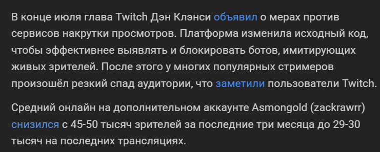 Тут даже на графике видно подтверждение ее честности. 7 августа, стрим в четверг не по графику, на нем видно, что зрителей меньше и среднее количество почти вполовину меньше обычного. Почему? Потому что привыкли к стримам по воскресеньям и не пришли на внезапный стрим. По идее если она крутит, то накрутила бы до своих средних значений. Но мы видим реальный просед по зрителям, что абсолютно железно доказывает отсутствие любой накрутки. Клоуны с вскукареками про накрутку железно слиты этим фактом.