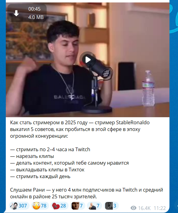 Читает донаты и истории подписчиков о «самых счастливых и самых разочаровывающих моментах жизни», реагирует шутками и личными комментариями.