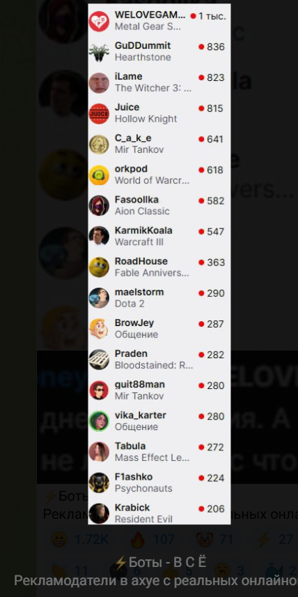>>25215628 27 августа, скрин из тг Бэбэя. Онлайн у него, как я и сказал, был экстремально близок к показателю, что и у Клинси во время "скручивании ботов" Твичом. Я тут чисто дефаю Алёну
