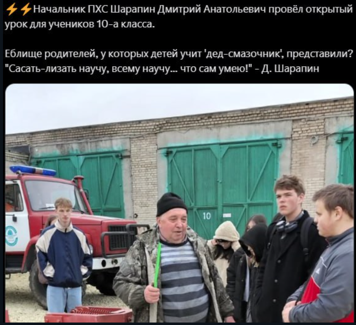>>25220539 Смазочника взяли на карандаш. Сейчас кому надо притянут деда по педолобби, мол пынексы приходят в пожарную часть, где тот творит разврат!