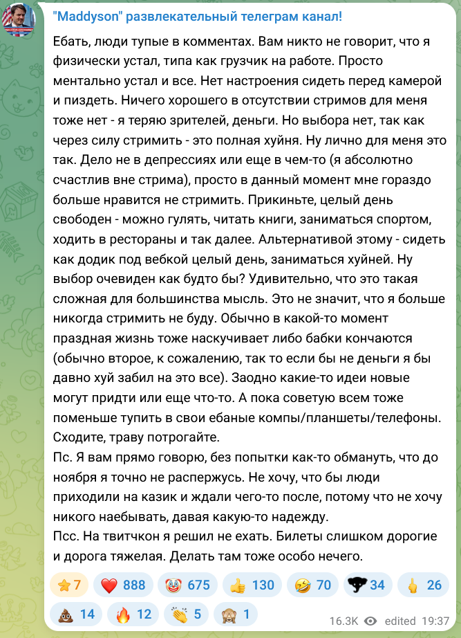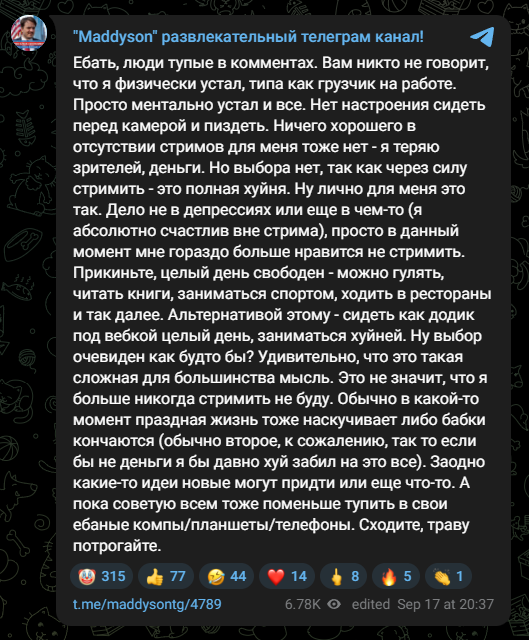 Аравудус серьезно вернулся в стриминг = чмодье съебало с позором в депрессии. Удивления это конечно не вызывает ни у кого уже.