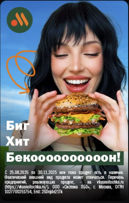 >>25234899 хз многие считают, что гаечка откажется от такой рекламы, тк она за зож и против джанкфуда