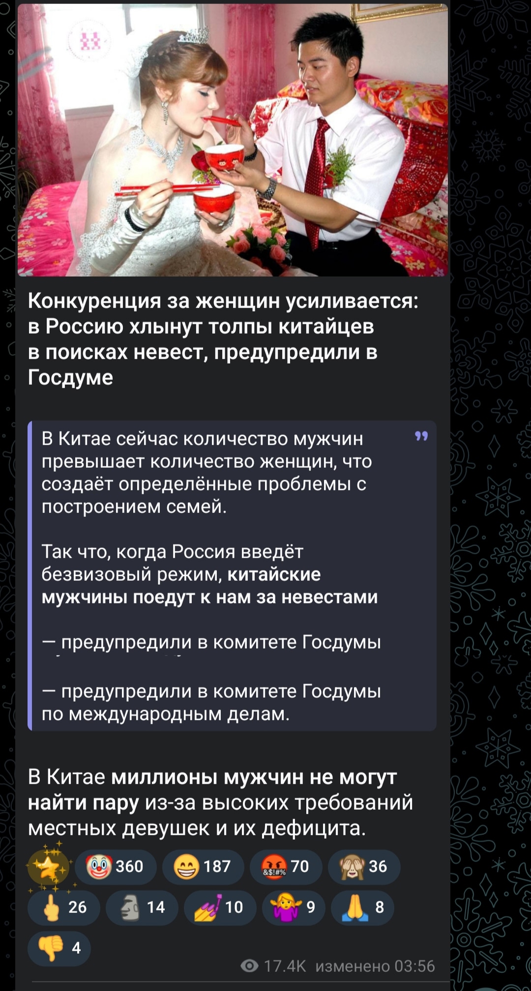 >>25232913 нахуя китайцам приезажть в россию? если хотят зарабатывать у них есть шанхаи и прочее гавно с оплатой х5, а климат у нас полное говно, еще и расисты будут смеяться. очередная телеграм пугалка