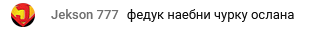 >>25207135 >это ты дрочишь на стримы и донатишь федуку трезвому ослану тут ты проебался нищий фанат таксона, я могу задонатить на завоз, настоящй завоз, вот как сегодня горох опустил гуся, если бы горох так же насрал га голову таксона я бы задонатил, так что терпи степашка.