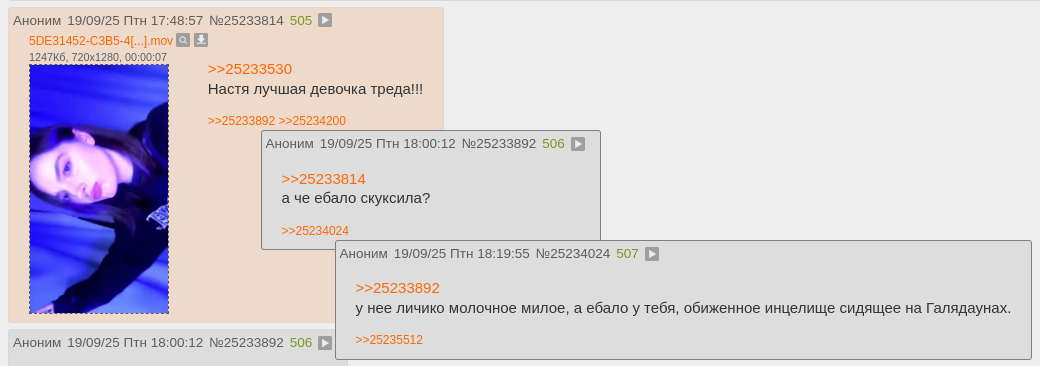 >>25236328 хуйло хватит спамить хейтом рандом милой девки, заебал. разверни и разбери по кусочкам лучше пизду своей мамаши в разных ракурсах в ебучей программе