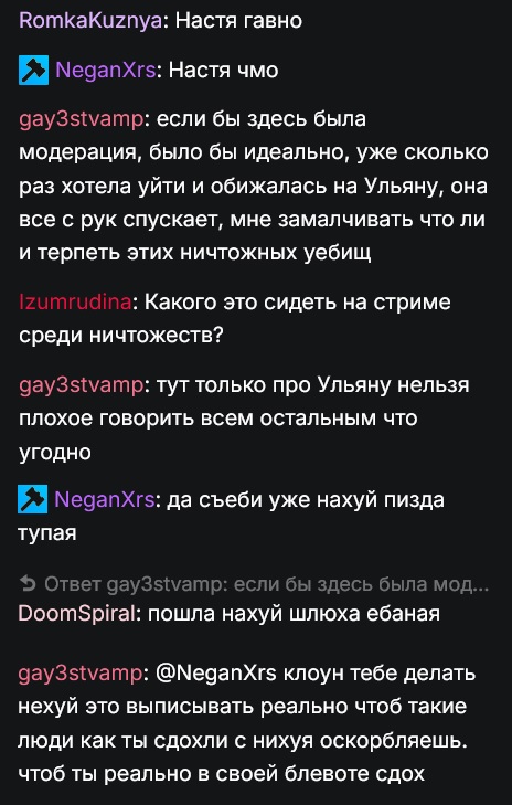 >>25236454 имел дело общаться с Настей маленька, она свой Twitch кидала, когда стримила, приветливая милая девочка. я не пойму, хули такое чмо к ней прицепилось блять, ты взрослый мужик моего возраста наверняка, тебе самому не хуево такую залупень писать безобидной девке.