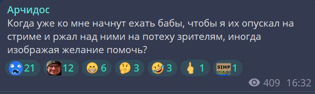 Чёт арю, походу реально галядаун обиделся на Настю потому что она каждый раз критикует и разъёбывает по фактам его вагиньку копросёлову на стримах. Так называемая месть в жопу ужаленного двачонка