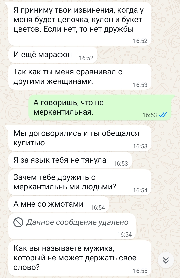 На сайте указано 5к в час - выезд в блядлвню своим ходом. Пишу по номеру в вацап, шлюха отвечает - ,,10к минимум по рынку, можешь другим написать. За 5к снимешь себе пожилую бабушку,,