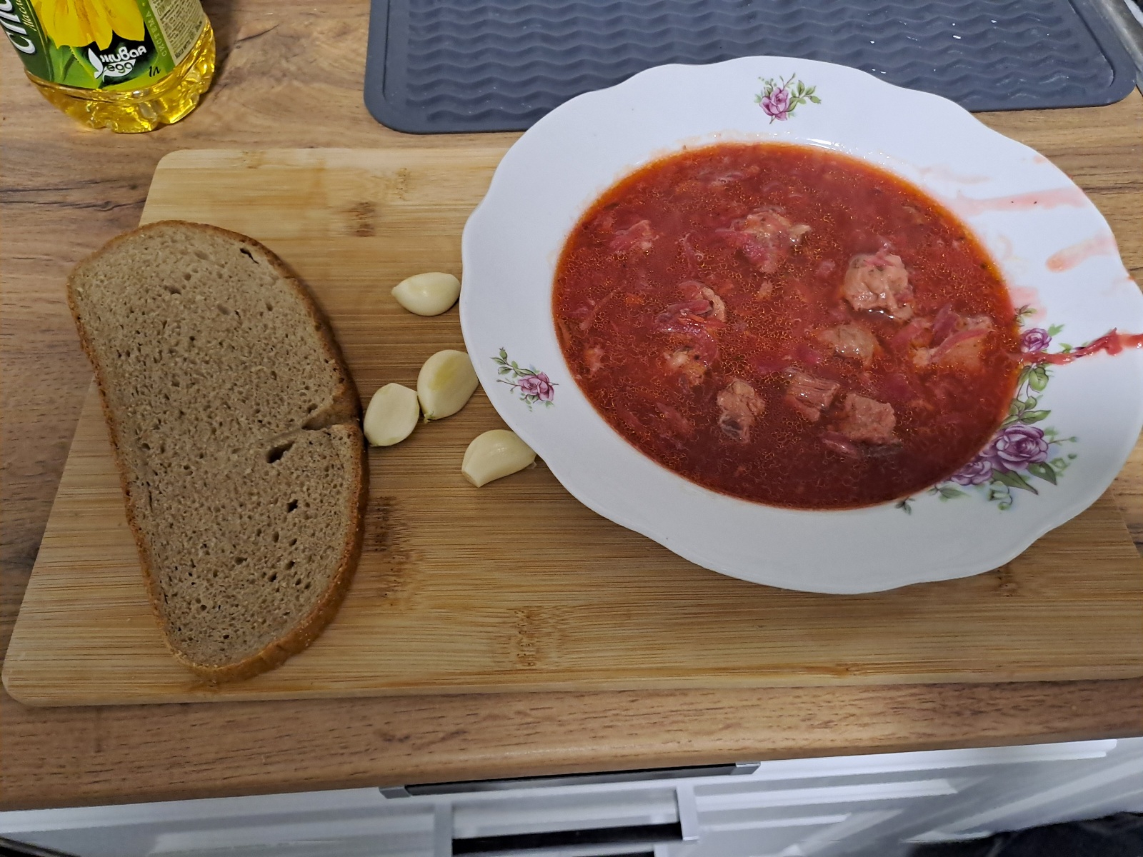 Суп удался, вот и случилось, что квартира пахнет супом из консервы, а не хуятиной.