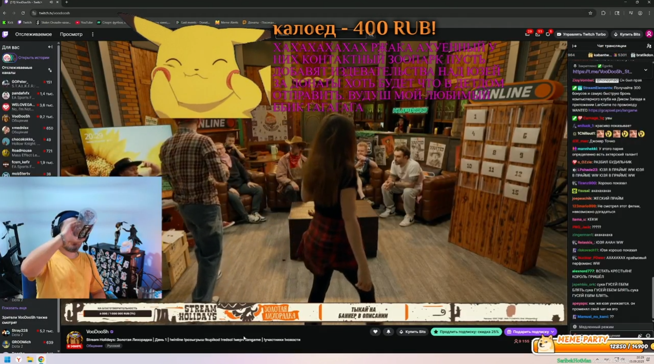 Ироничная слойка в том сейчас что Мэд сидит с ебейшей накруткой в 20к, в то время как на канале Вудуша с честными 8к зрилов, собранных со всех стримеров проводят интересный ивентик для людей и поднимают настроение. Подумайте еще раз чью сторону вы занимаете, ребята.