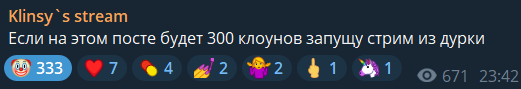 Несколько моих источников близких к этой клоунаде сообщили мне, что спонсоры занесли туда не менее 25 миллионов рублей. А накрутка там подрублена в разрезе 5 ботов к 1 реальному зрителю. Ну вы и сами все видели на моем стриме. Вот бы узнать сколько заплатили самим стримерам с этих спонсорских миллионов. Чувствую мы бы с вами знатно поржали. Ничего, затерпят маленькие.