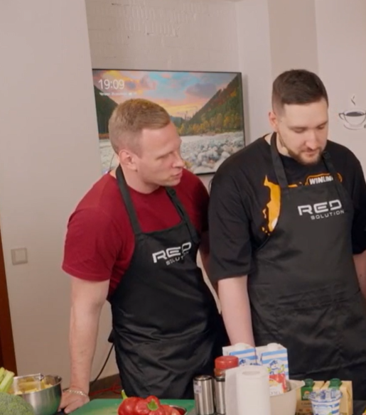 Мне вот эти два чела очень понравились. Как выяснили в треде - в красной футболке это представитель Ред Солюшена, а в черной лунопопик Дианы. Весь кукинг эпизод красный не отлипал от черного и ловил каждый его взгляд, застенчиво улыбался и тихонько касался рукой