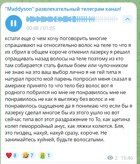 АХАХАХАХА МЭД ЩА В ПРАЙМЕ) очередная голосовуха про сбритые волосы)) это челлендж был для меня прослушать голосовуху и не засмеяться - Я ПРОИГРАЛ НЕ СМОГ!!!! ОБОРЖАЛСЯ СРАЗУ!! еще и этот прикол "для своего парня" ахахаха круто