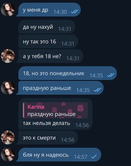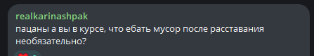Там Карине написал какой-то популярный тиктокер. Шпак по прежнему пользуется спросом у зумеров с шилом в жопе. А вы говорили... А сколько ей пишут, про которых она не говорит??? Зависть присутствует? А у Тони резника ревность присутствует? Типаж похожий, как будто из тусовки кузнецкий свад. Я бы ревновал. Я даже сейчас ревную