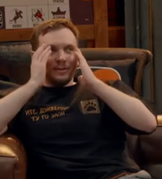 Вот этот хуй, кажется Арсений. Это закадровый голос с времен хат Дреда. Что Где Когда. Сегодня его заставили выйти в кадр, и 5 минут он извинялся за то что спизданул вчера.