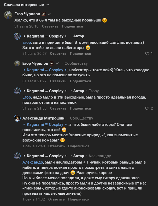 Ну а после всех эти ахуительны историй я пошел купаться в Волгу и пожалел об этом, тк вода была ледяная и кукушенка ищи свищи Потом мне Лексус подарил пиво на плаже и скрылся Далее, в 17:00 приехали на место Гвардейцы и высматривали Лексуса, тк он чето пиздел на них (по их словам) Гвардейцы начали объяснять косплеершам, что за цирк с конями тут происходил в период 2018-2023 года и параллельно снимать скрытую съемку (асуждаю), тк они вообще не были связаны с Фистом, только Маркова хуесоси, но не помню по какой причине (этих косплеерш Рита Тайнакова выкладывал к себе в группу по БЛ)