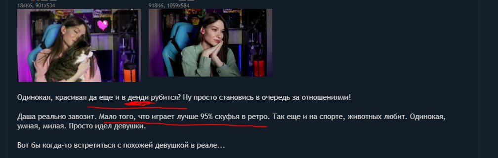>Одинокая, умная, милая. Просто идел девушки. Кто тебе сказал что она одинокая, стримерши и косплеерши никогда не палят ёбарей, иначе паства отваливается.
