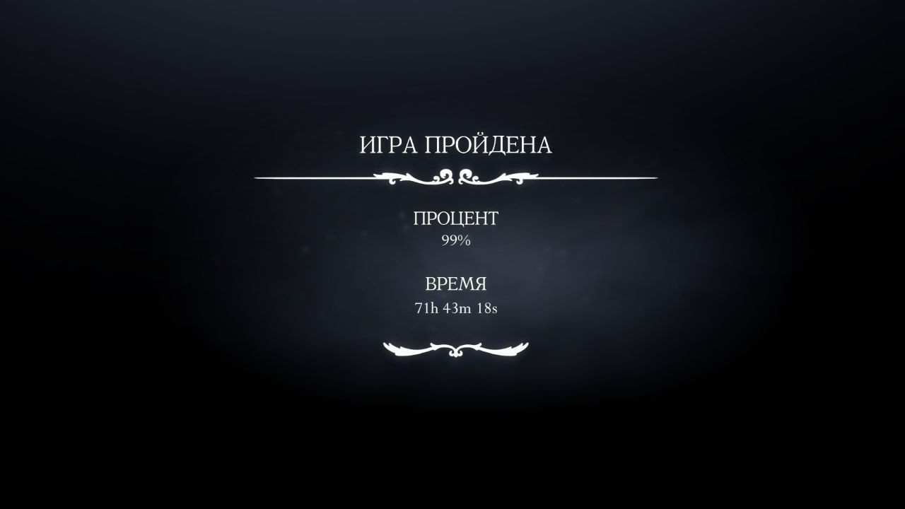 Что ж. Мне даже слегка грустно, что эти приятные боль и страдание закончились. Дивное выдалось путешествие. Хотелось бы пару слов сказать, пока свежо. Сразу оговорюсь, я не претендую на звание дикого хардкорщика. Играл, как играется. Сюжет в игре очень классный, атмосфера и наполнение мира - просто отвал жопы. За каждым углом тебя ожидает что-то, чего ты ещё не видел раньше. Музыка прекрасно дополняет этот мир. Чистый, красивый и затягивающий. За всё прохождение у меня не возникло ни разу желания дропнуть это всё, хотя на некоторых моментах я подыхал бесчетное количество раз. Порой мне казалось, что разрабы меня ненавидят. Но каждый раз, как я превозмогал себя, я ощущал это удовольствие. От того, что стал лучше, сильнее. От того, что дальше - больше. Мы уже обсудили с товарищами. Разрабы шагнули далеко вперёд со времён Hollow knight. Игра сложная. Пиздец какая сложная. Проходить в режиме стальной души - я рот ебал. Даже пробовать не буду. Но это было незабываемо Git gud, посоны.