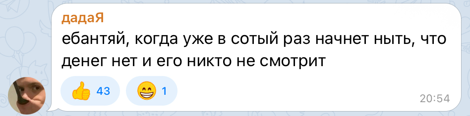 улетел во владик чтобы там запустить аук. кто эти дауны, что ему донатят, из-за этих выблядков пу и закручивает пенсам гайки, ибо видит что денег у народа дохуя