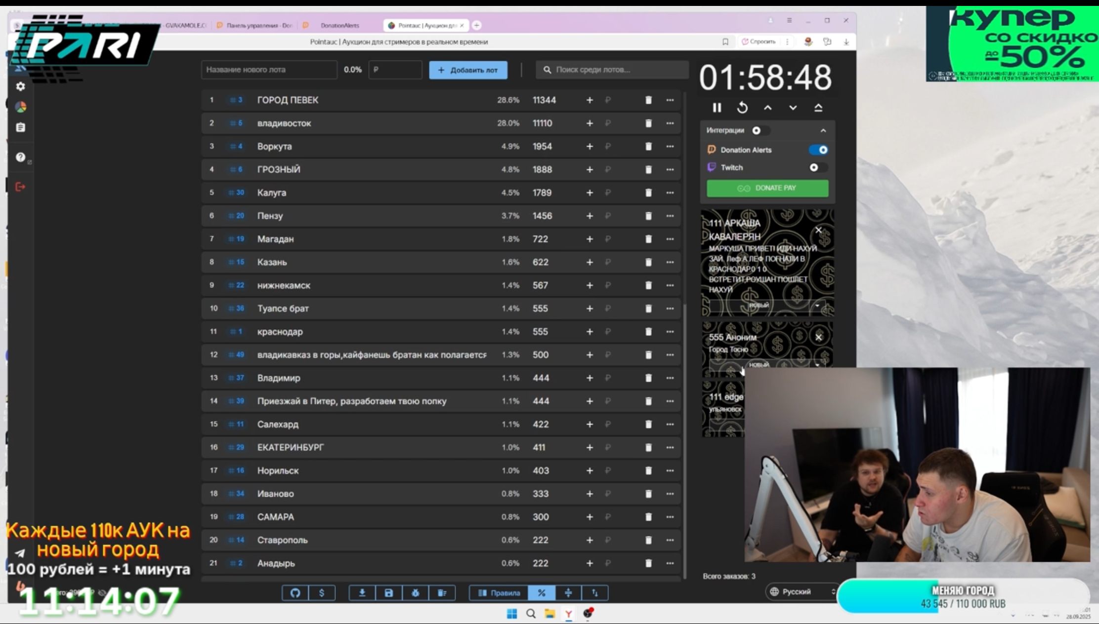 5 часов стрима из казани, из которых 2 часа это просто хождение по центру города/пожирание чак-чака и 3 часа аукциона.
