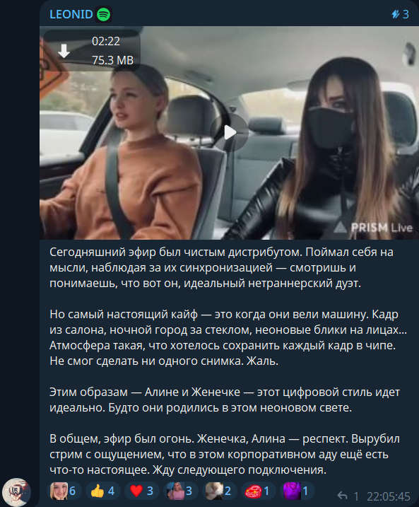 Женя по женственности мб на уровне Монтаны или около того. Харизмы практически нет. Она реально прям пацан пацан с женским лицом и сиськами, поэтому то ее и смотрят. Без негатива.