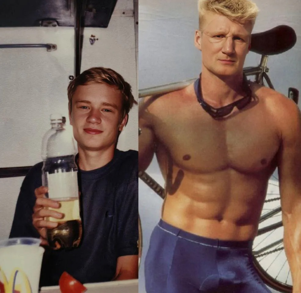 Да ни в чем, просто удачное фото, возможно, заранее отредактированное перед публикацией. В любом случае, даже если признать, что он был, как говорится, конвенционально красив, ему это в жизни не помогло ничем. Ну или он это никак не использовал, что почти что одно и то же.