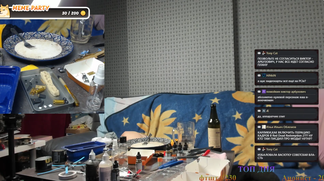 я так понимаю бомж опять ничего не собрал. вот ему реально охота тащить этот стол каждый раз чтобы потом просто сидеть в телефоне. это даже донатов не приносит. за весь стрим было два доната по 180.