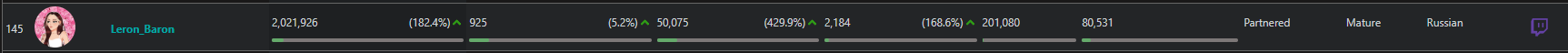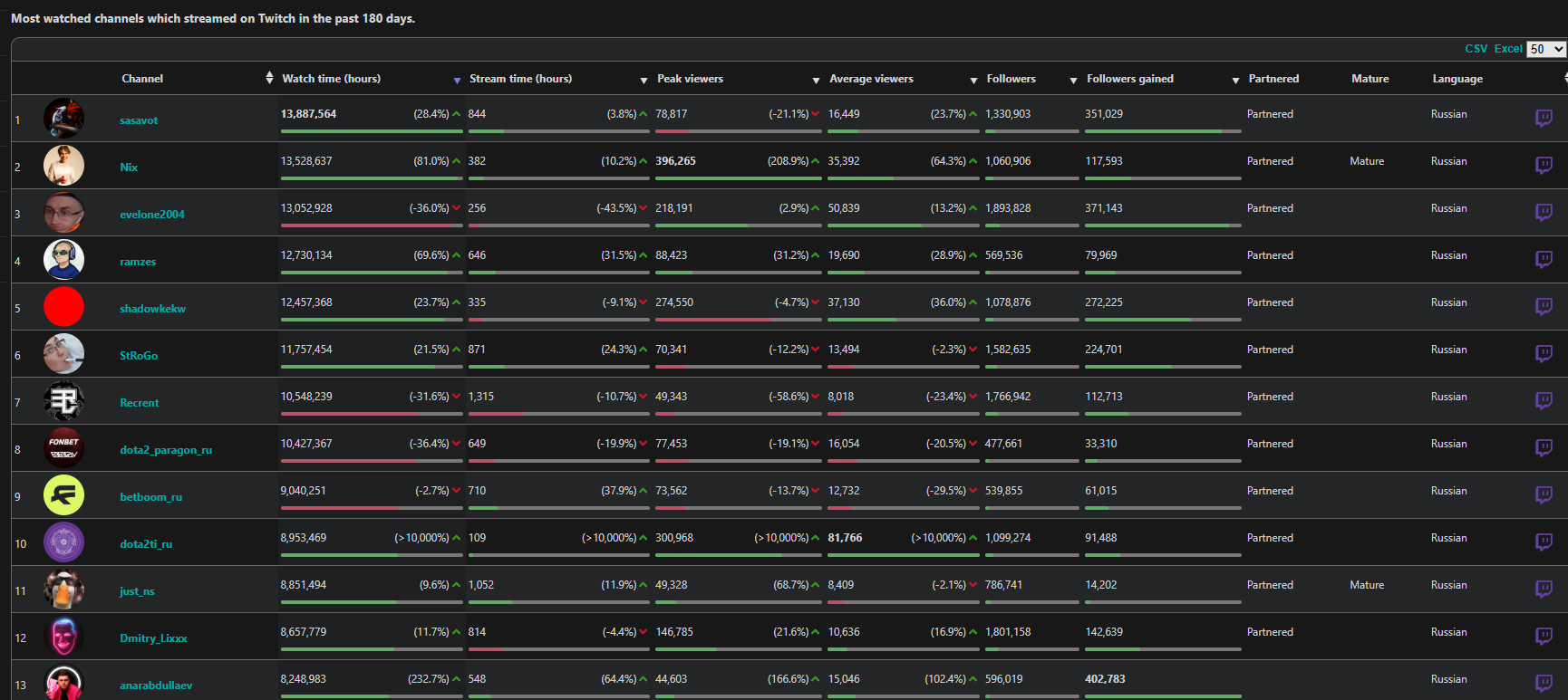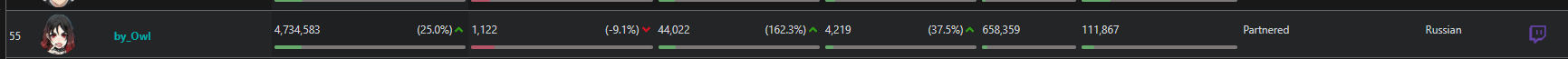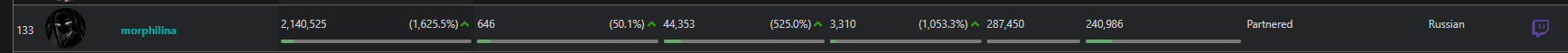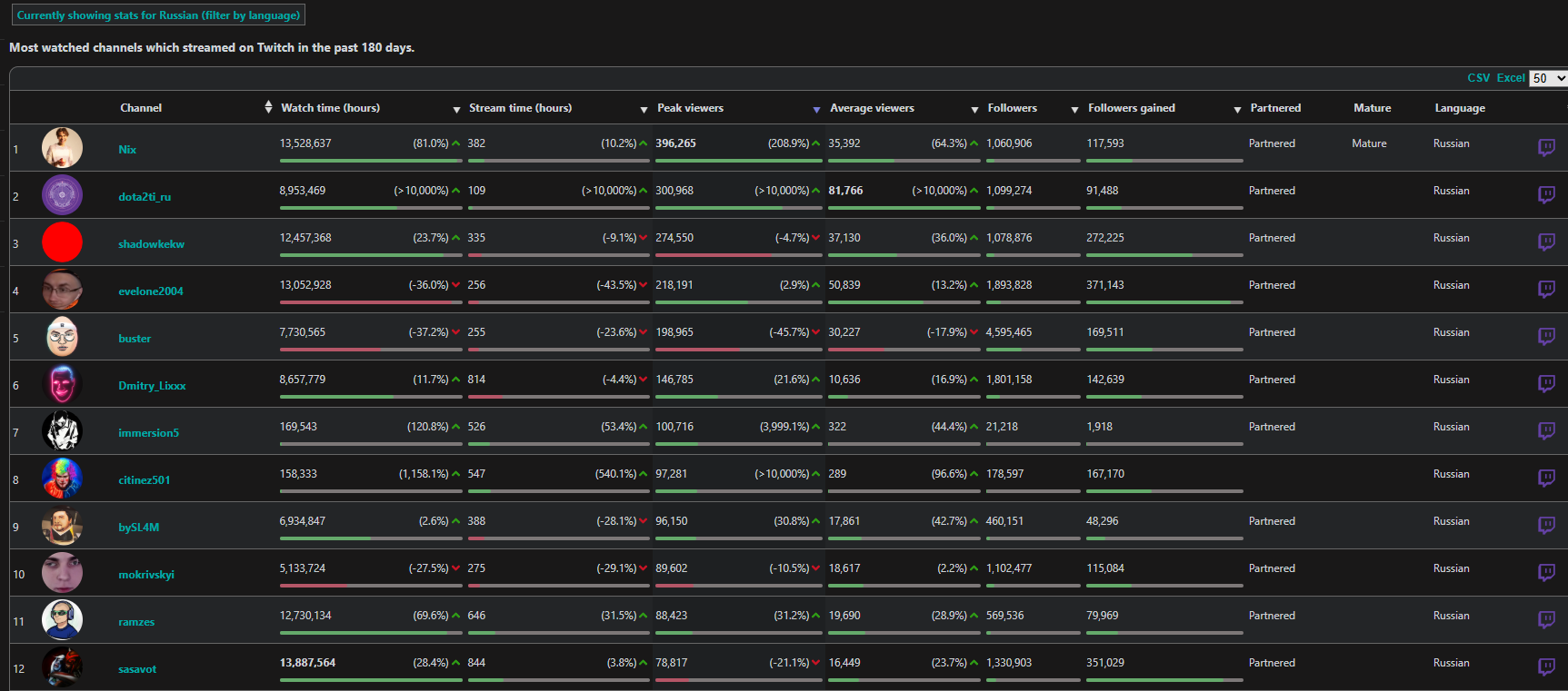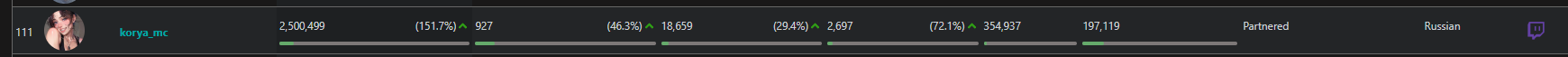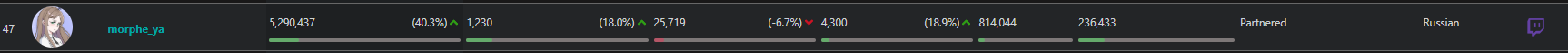 >>25357752 никсу и шаудокеку сосвет из-за трансляций ФИНАЛОВ туриков, такими темпами можешь каналы парагона или дота ру брать за лучших стримеров. И у анара логично фоловов больше, так как у него всего 400к было и есть куда рости, а на евела давно люди подписаны.
