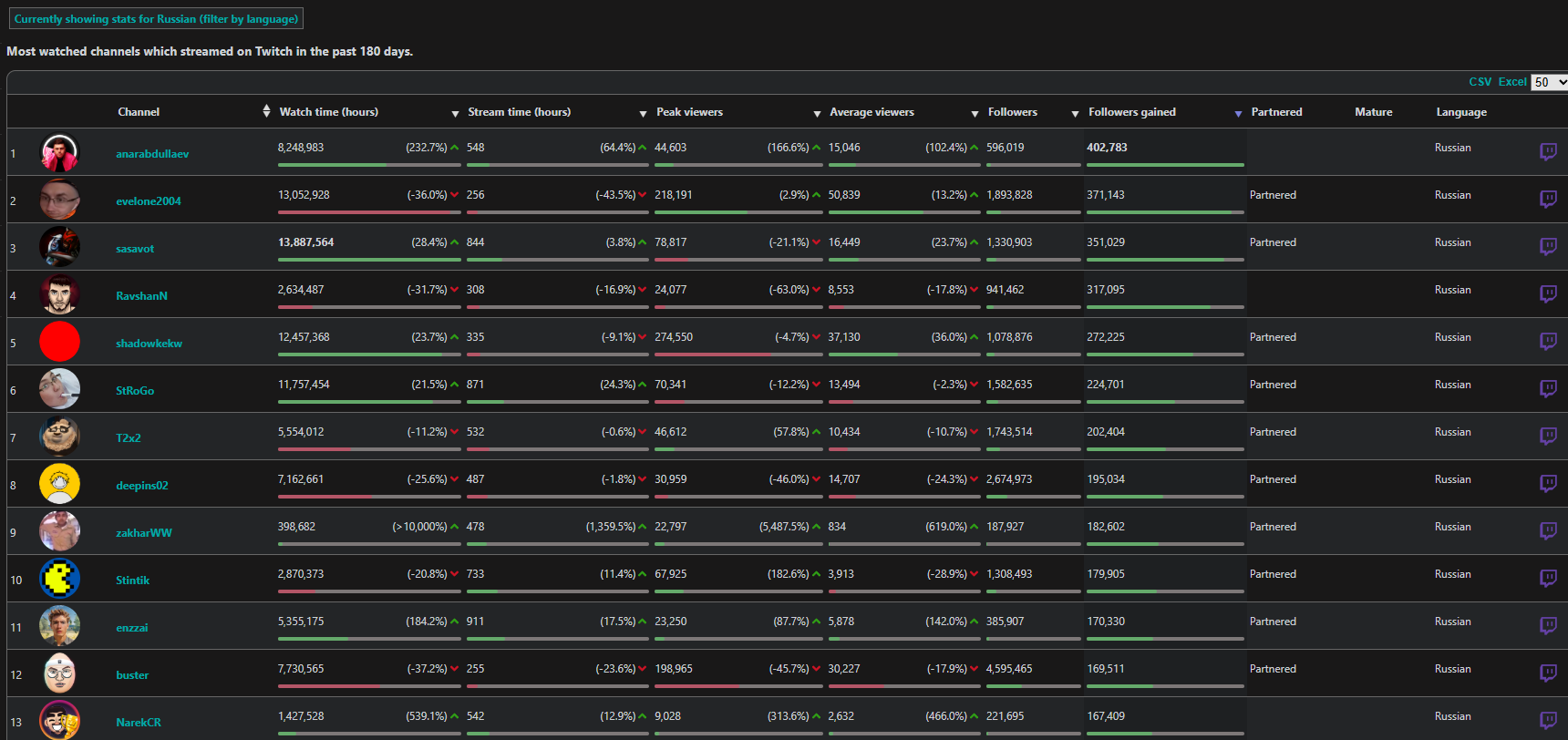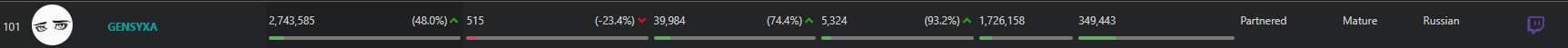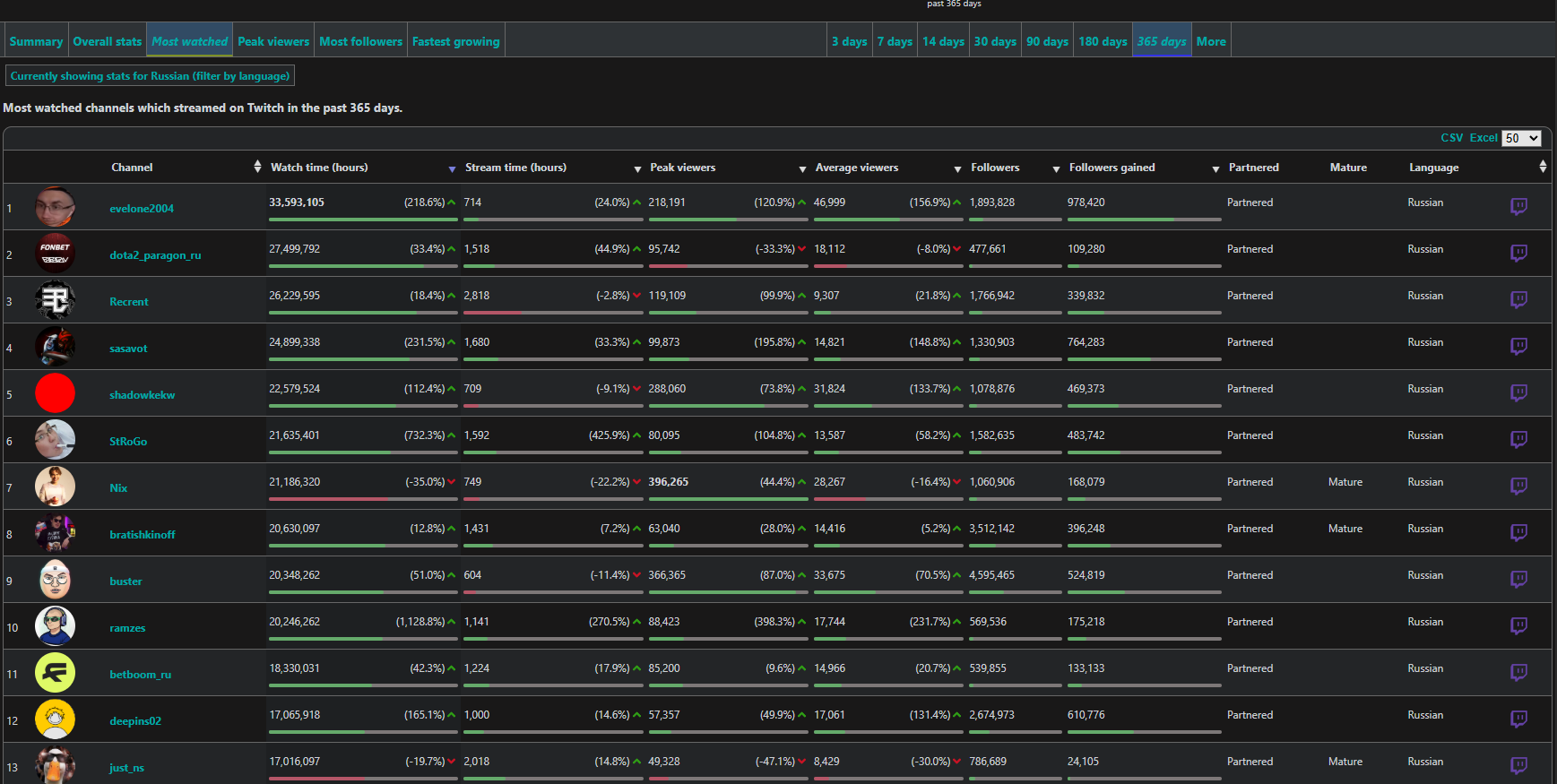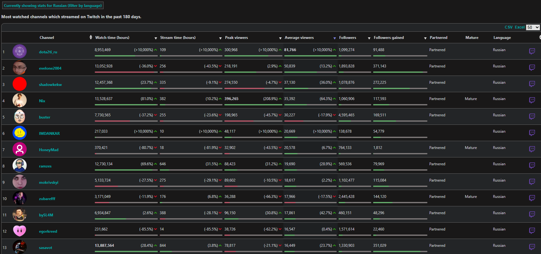>>25357752 никсу и шаудокеку сосвет из-за трансляций ФИНАЛОВ туриков, такими темпами можешь каналы парагона или дота ру брать за лучших стримеров. И у анара логично фоловов больше, так как у него всего 400к было и есть куда рости, а на евела давно люди подписаны.
