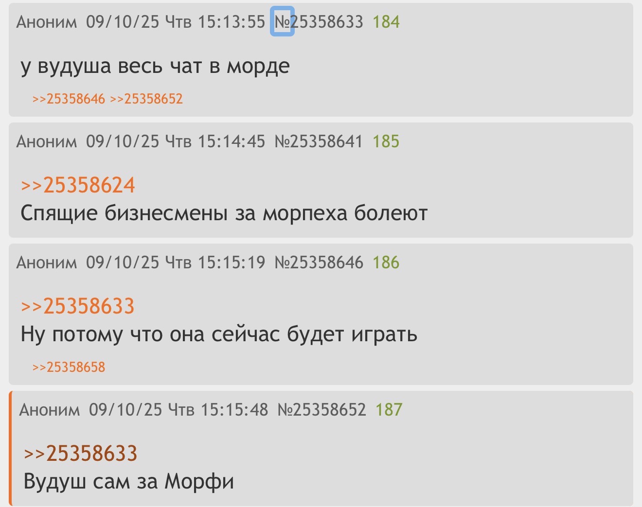 >>25357654 он это ответил челу который пиздел в чате что 3 канал эвелона это морфилина. Вот арбузян и защитил малышку, что с такой логикой третим каналом можно считать мокривского, кека, скилза, ктома и остальных