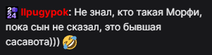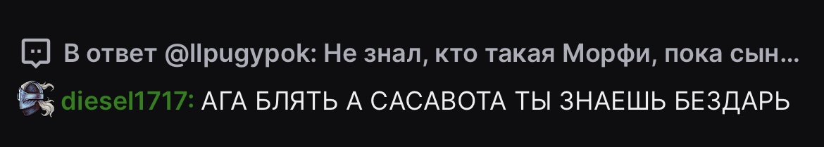 а хули у этих новоиспеченных симпов тумбочки так горит от пародии на папича? он же ей как и кишки в целом к которым этот 300 авг червяк подсосалась по сути свет в будку провели. без них она бы так дальше и барахталась на дне твича