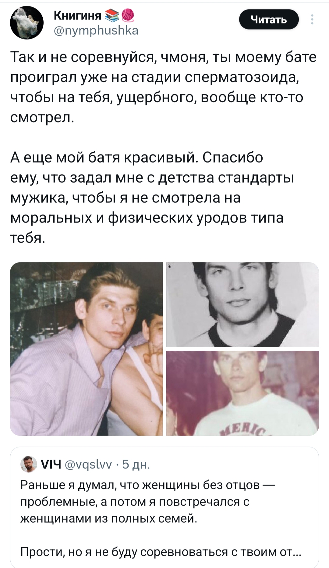 >>25361402 Не, я его давний зоонаблюдатель. Разоблачать его фейковую смерть, в которую буквально никто не поверил, унылое занятие. >Если нет, то интересно, кто же ведёт канал: алень или сельдь какая-то. Сложно сказать. По логике вещей, скорее всего, баба, но мне админ напоминает админа паблосов про Фомина, а там был тип.