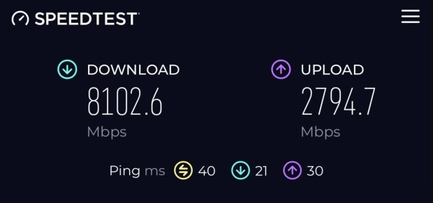 Вице-президент SpaceX по проектированию Starlink Майкл Николс опубликовал новые сочные результаты Speedtest на новом мобильном шлюзе Starlink, которые продемонстрировали впечатляющую скорость загрузки в 8 Гбит/с и скорость отправки в 2,8 Гбит/с, при этом он добавил, что « земли не видно »