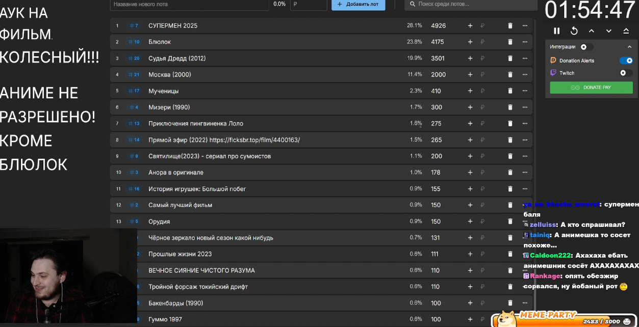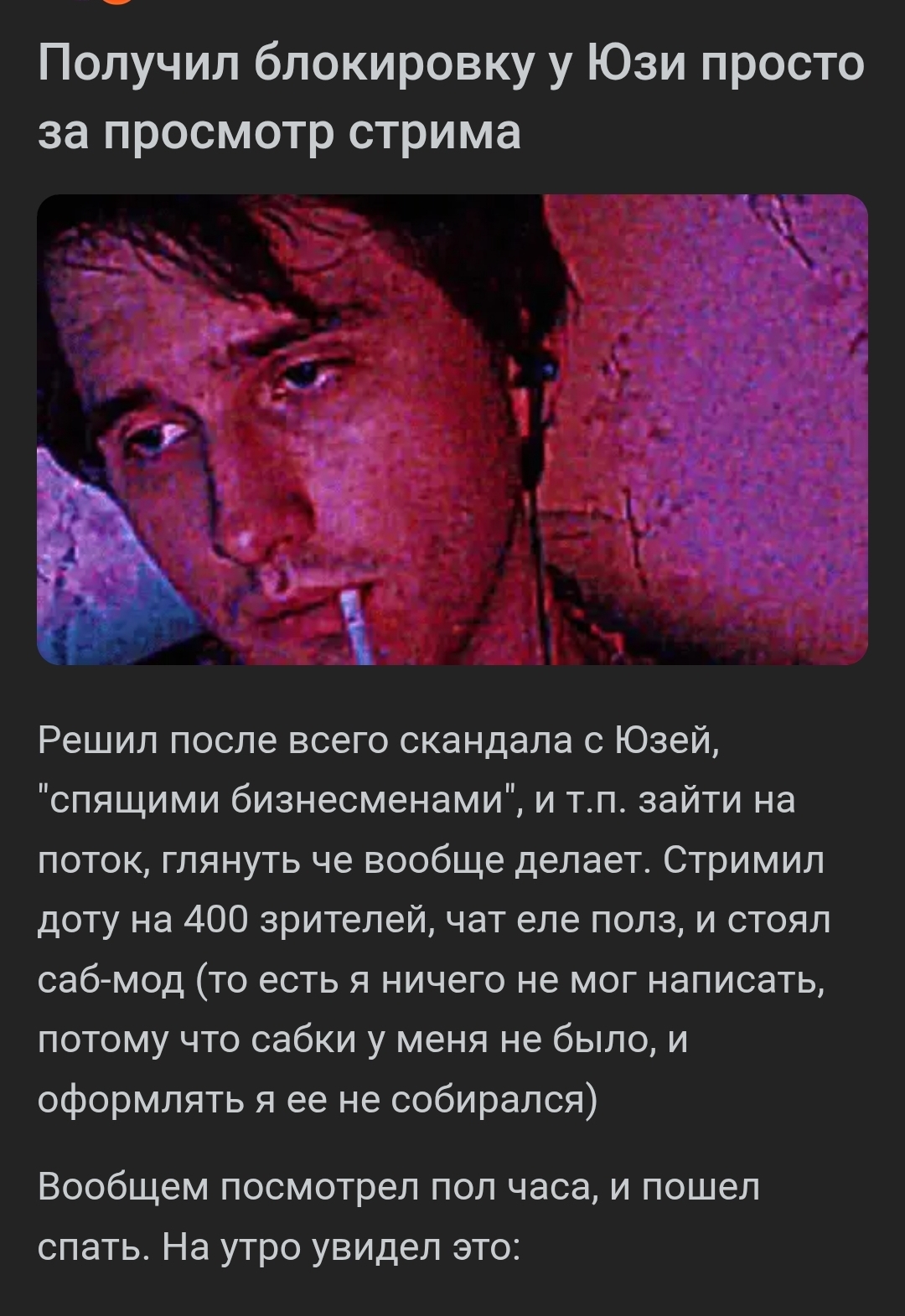 Следите за руками Юзя понимает, что у него кончаются деньги, а за рекламу платят не так много как хотел. Идёт на встречу зрителям, стримя долг за аук годовой давности в надежде, что после этого ему будут донатить снова ведь проблема была именно в том что ты год назад не прошел эйдж оф мифолоджи Открывает чат, ожидая поток благодарных зрителей С ним начинают просто здороваться У него что-то щелкает в голове и он начинает хуярить пермачом